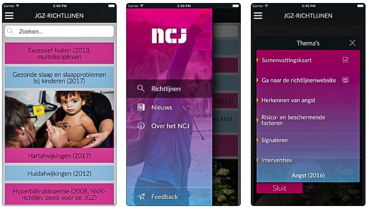 Het Nederlands Centrum Jeugdgezondheid (NCJ) lanceert de app ‘JGZ-richtlijnen’ voor professionals in de Jeugdgezondheidszorg (JGZ). De app moet snelle toegang bieden tot aanbevelingen van alle 29 wetenschappelijk onderbouwde JGZ-richtlijnen. De gratis app is te downloaden voor iOS en Android.
