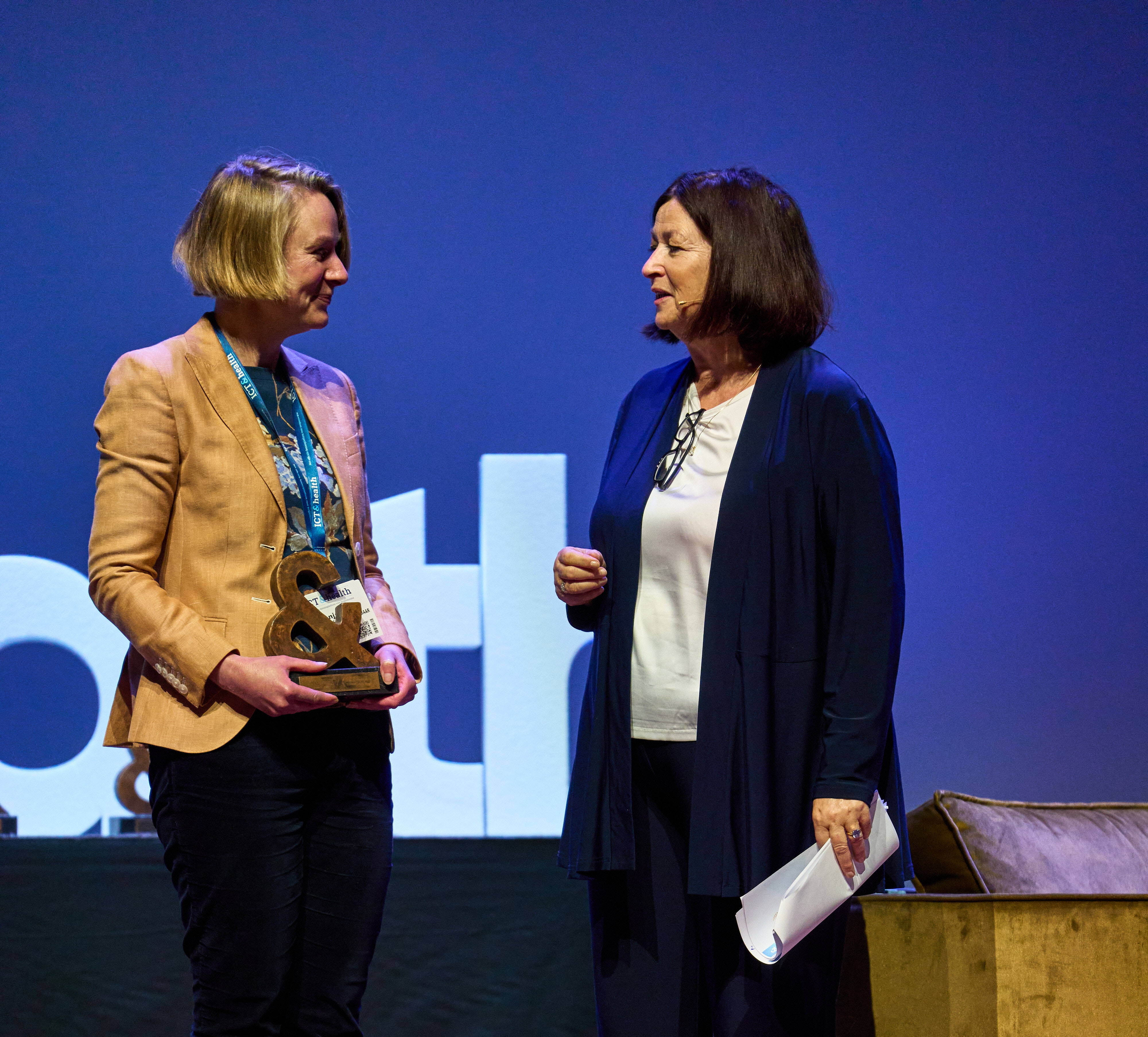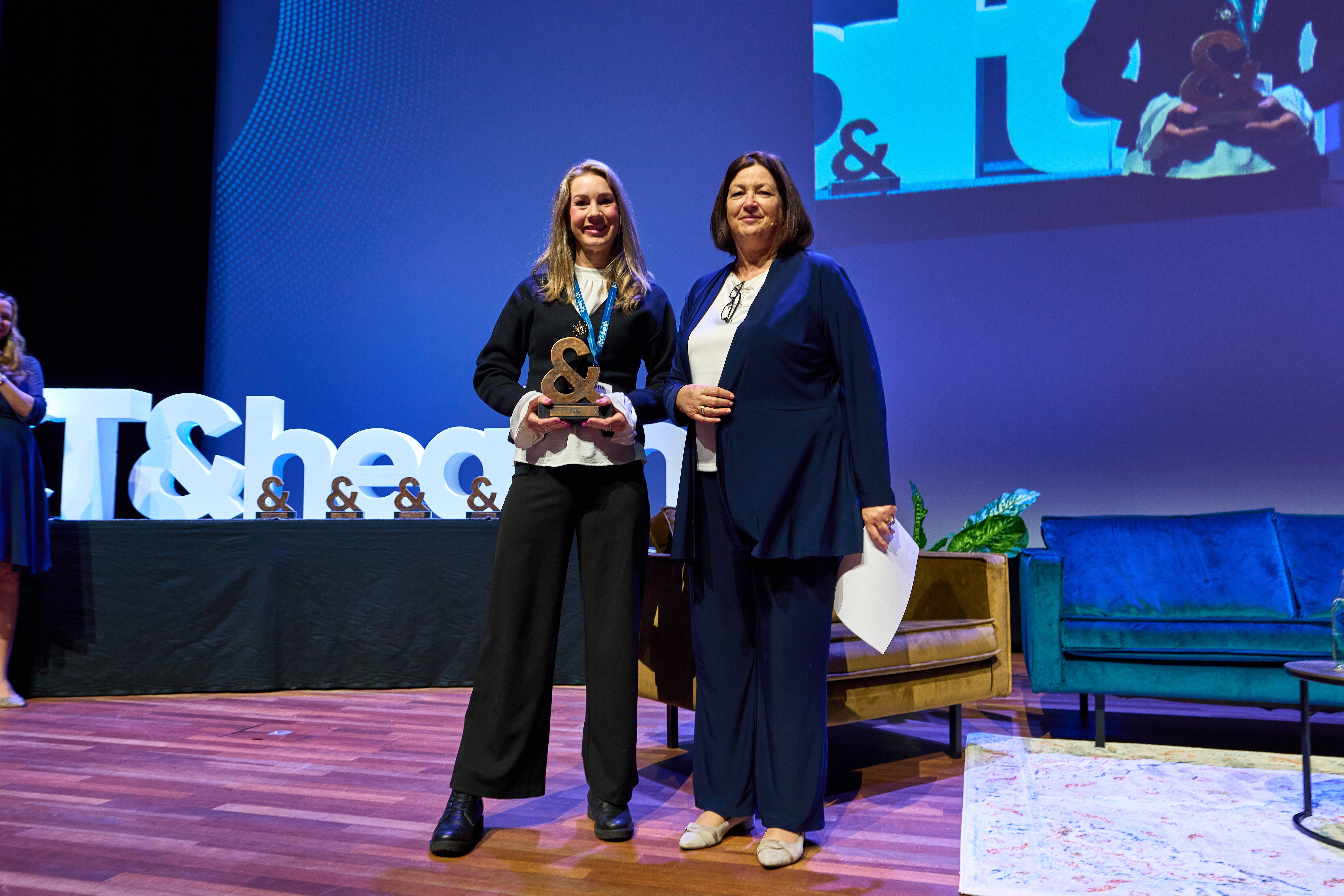 Tijdens de ICT&health World Conference 2026 werden voor de tweede keer de ICT&health Awards uitgereikt. In totaal waren er 23 genomineerden in vijf categorieën. Net als vorig jaar was de award een bronzen beeld, ontworpen door de Zuid-Limburgse kunstenaar Marion Backus. Conny Helder, de kersverse voorzitter van de redactieraad - en van de vakjury met verder Lucien Engelen en Diederik Gommers – reikte de Awards uit.