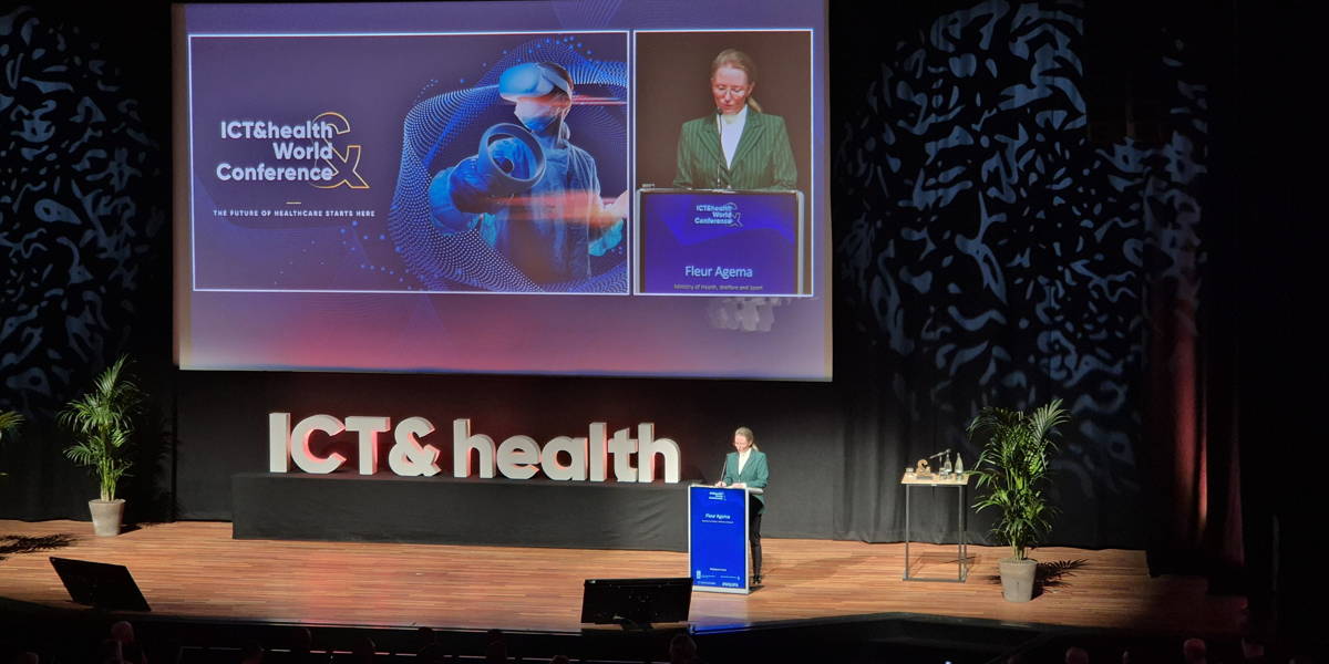 “De gezondheidszorg staat voor grote uitdagingen, van personeelstekorten tot complexere zorgvragen door multimorbiditeit en vergrijzing. Er zijn genoeg uitdagingen in de zorg en de hoop is dat digitale oplossingen ons gaan helpen om die uitdagingen aan te kunnen”, zo opende minister Fleur Agema van Volksgezondheid, Welzijn en Sport de tweede dag van de ICT&health World Conference in het MECC in Maastricht.
