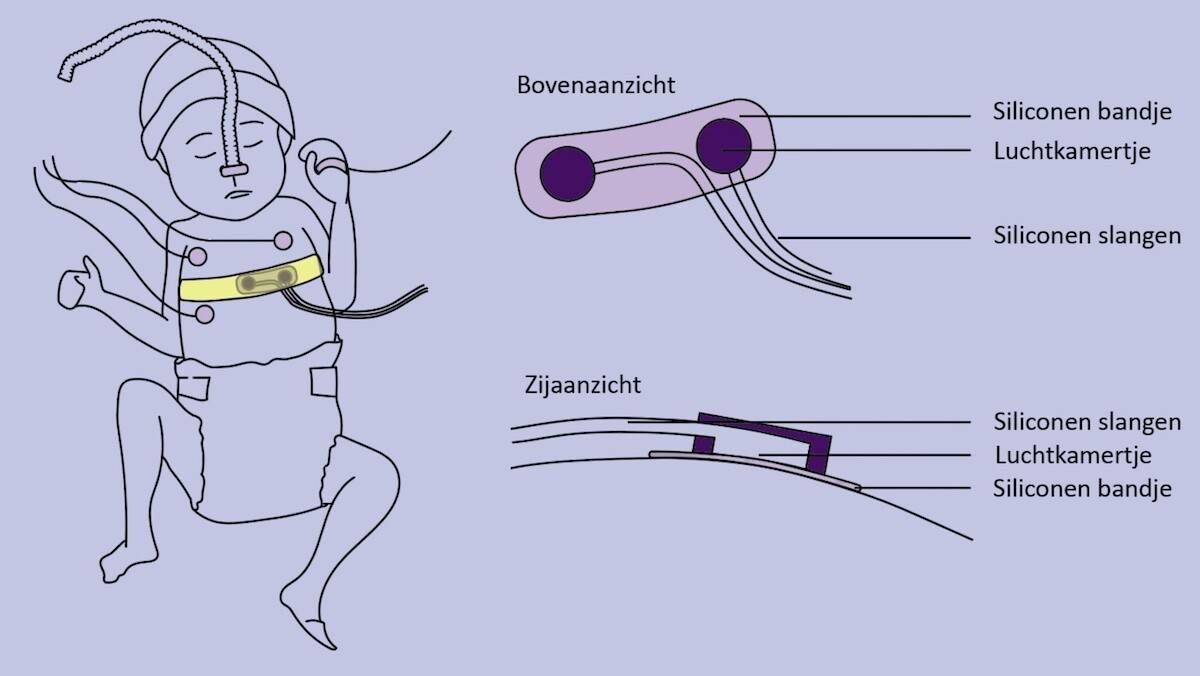 Te vroeg geboren baby’s kunnen plotseling stoppen met ademen, een gevaarlijke apneu die snel tot een zuurstoftekort en mogelijk hersenschade leidt. Verpleegkundigen proberen in die gevallen de ademhaling met zachte aanrakingen te stimuleren, maar zij kunnen niet altijd tijdig reageren. Promotieonderzoeker Sophie Cramer ontwikkelde een slim apparaatje dat automatisch ingrijpt zodra de ademhaling stopt. Het is een mogelijke doorbraak in de zorg voor kwetsbare couveusebaby’s.