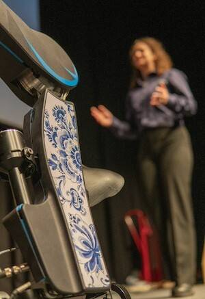 In oktober doet Project MARCH IX mee aan de CYBATHLON 2024 in Zürich, een van de grootste bionische competities ter wereld. Om zich te kunnen onderscheiden van andere deelnemers, hebben de ontwerpers gekozen voor een uniek Delfts Blauw ontwerp. Dat is gemaakt in samenwerking met de oudste producent van Delfts Blauw en staat symbool voor de plek waar Project MARCH teams al sinds de oprichting samenkomen en innoveren.