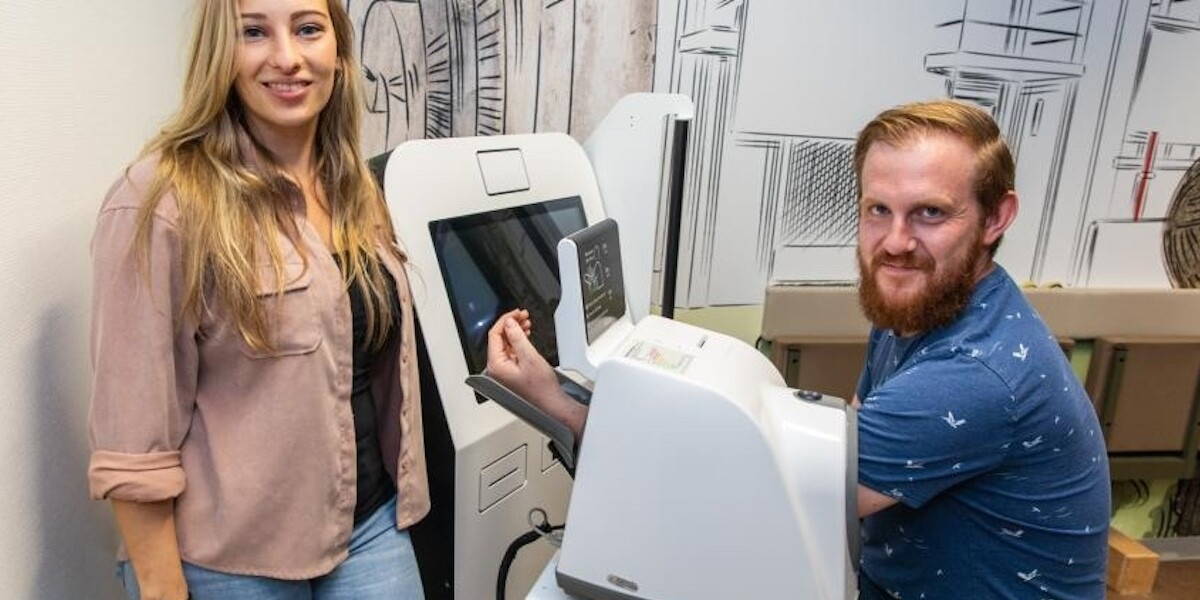 De zelfmeetkiosk is volgens Gennisse heel eenvoudig in gebruik. Patiënten scannen als eerste het polsbandje dat ze krijgen wanneer ze op de SEH binnenkomen. Ze gaan op de stoel zitten, krijgen een instructie en drukken op de startknop. Gennisse: “Als de patiënt niet in staat is om in de kiosk te gaan zitten of als de patiënt er niet uitkomt, dan doen wij natuurlijk alsnog zelf de metingen.”