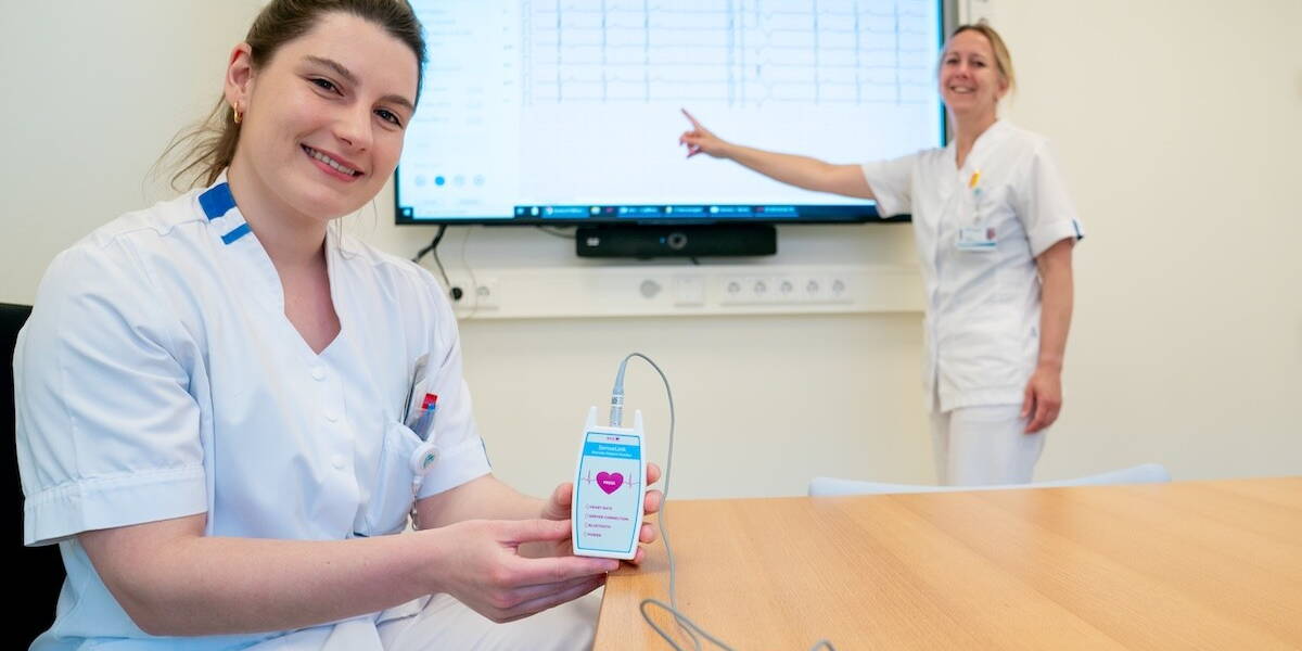SenseLink is een compacte, draagbare recorder die via plakkers op het lichaam ECG-metingen verricht. Deze wordt in het ziekenhuis door zorgmedewerkers aangesloten, waarna de patiënt naar huis kan. Vanaf dat moment wordt de hartactiviteit van de patiënt op afstand en in real-time gevolgd. Artsen en verpleegkundigen van de afdeling Cardiologie kunnen op basis van deze gegevens tijdig ingrijpen bij afwijkingen in het hartritme. Dit verkleint de kans op complicaties, vermindert het aantal ziekenhuisopnames en verhoogt de kwaliteit van leven.